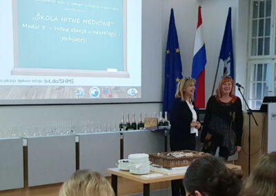 Osim naslovnih tema, polaznici Škole imali su priliku čuti aktualne smjernice u pristupu akutno otrovanom i palijativnom bolesniku, o medicinskoj dokumetaciji te o pravnim aspektima rada u hitnoj medicini. Kroz ovu zanimljivu i korisnu tematiku polaznike je proveo 21 predavač kojima se i ovim putem zahvaljujemo na trudu u pripremi poučnih i zanimljivih predavanja, ali i na pisanju tekstova za priručnik „Hitna stanja u neurologiji i psihijatriji“. Modul 5 održan je u Zagrebu, u Edukacijskom centru Klinike za psihijatriju Vrapče, u izuzetno ugodnom prostoru i atmosferi čemu su pridonijeli djelatnici Klinike svojom organiziranošću i susretljivošću.