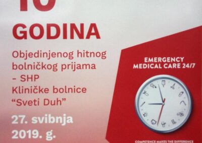 Pod pokroviteljstvom Hrvatskog liječničkog zbora – Hrvatskog društva za hitnu medicinu i u organizaciji Objedinjenog hitnog bolničkog prijema Kliničke bolnice Sveti Duh, u Zagrebu je 27. svibnja 2019. godine održan Simpozij „10 godina za budućnost“, a prigodom desete obljetnice rada Objedinjenog hitnog bolničkog prijema.