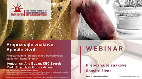 Dana 01. ožujka 2022. godine u 18:00 sati održat će se webinar na temu stečena hemofilija, ali će biti naglašen i pristup bolesnicima s koagulopatijom općenito, uz savjete primjenjive u svakodnevnom radu u hitnoj medicini.